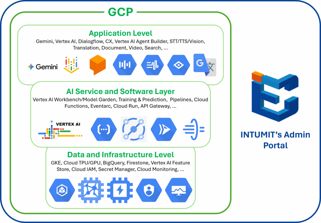 INTUMIT は Google クラウド プラットフォーム と提携し、企業環境全体にわたってインテリジェントでスケーラブルな AI ソリューションを提供します。Gemini、Vertex AI、Dialogflow CX などの GCP 高度ツールを統合することで、多言語会話エージェントを構築、ワークフローを自動化し、複数チャネルにわたる顧客エンゲージメントを強化します。